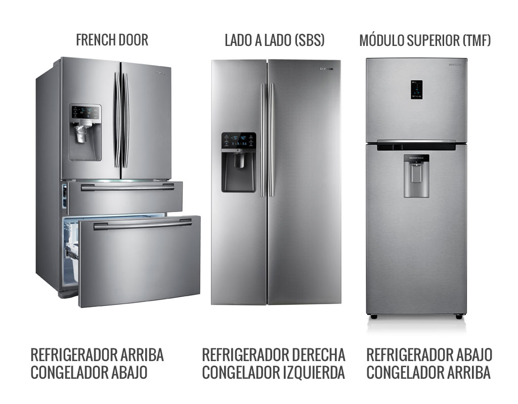 Las neveras tienen tres estilos de diseño principales: ‘French Door’ (puerta francesa), SBS (lado a lado) y TMF (de módulo superior). Cada una tiene sus propias ventajas y desventajas dependiendo del tipo de usuario.