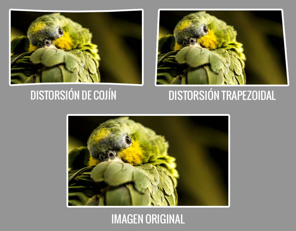 Otros de los problemas menores ocurre por perspectiva. En las pantallas planas hay una distorsión trapezoidal que se ve en la pantalla, y que se nota más si hay algún tipo de línea vertical u horizontal que resalte más la distorsión de perspectiva.  Así mismo las pantallas curvas generan una distorsión óptica de cojín. Estas hacen que las esquinas de la imagen se vean un poco más estiradas, y el centro como si estuviera hundido.