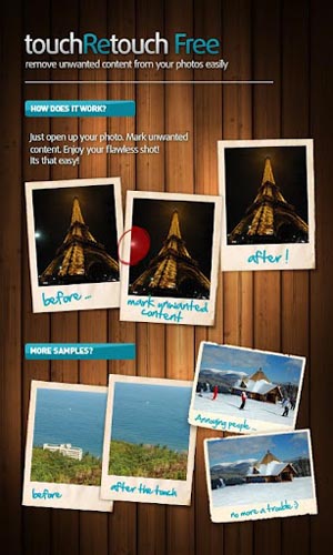 Gracias a las herramientas que incluye TouchRetouch, los usuarios pueden corregir o eliminar los elementos que no quieran que salgan en sus fotografías al instante desde su teléfono inteligente. Aunque no se trate de una aplicación exclusiva para Galaxy Note, a través de TouchRetouch los usuarios de este equipo podrán sacar provecho a todas sus características y hacer las correcciones de forma más efectiva con la ayuda del S- Pen.