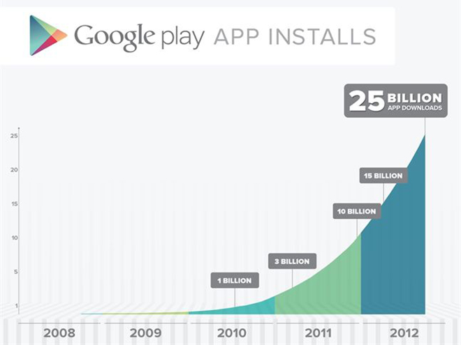 Así ha sido el crecimiento en descargas que ha tenido Google Play Store. Foto: Google.
