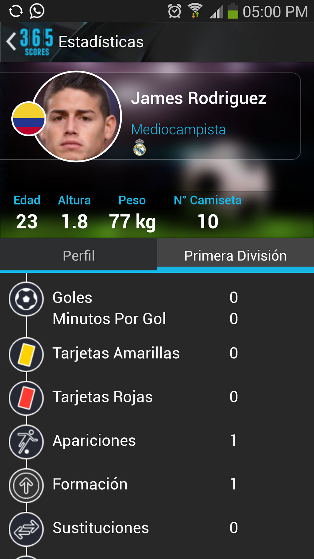 Esta es una de las mejores apps para seguir este hermoso deporte. Combina la sencillez de las listas Soccer LiveScores y Ligas de Fútbol. Tiene la misma opción de seleccionar ligas y equipos favoritos como 365. Y además tiene un sistema de estadísticas con su propio sello: línea del tiempo de sucesos en el partido, intercambios, faltas, y demás.