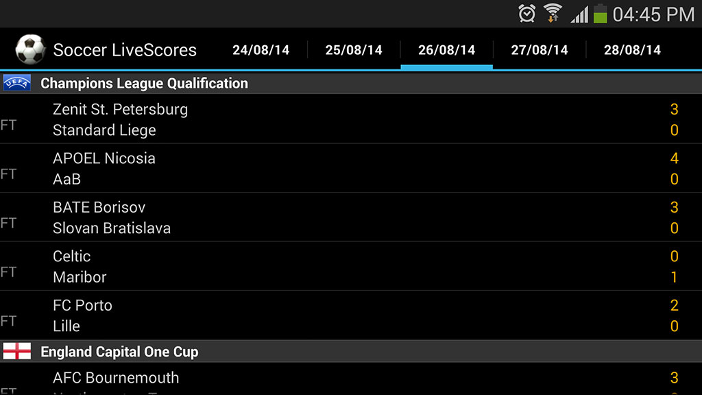 No será muy llamativa visualmente, pero cuenta con la información de todas las ligas y torneos. Así que podrá estar al tanto de lo que ocurre en la Champions League hasta la S.League de Singapur.