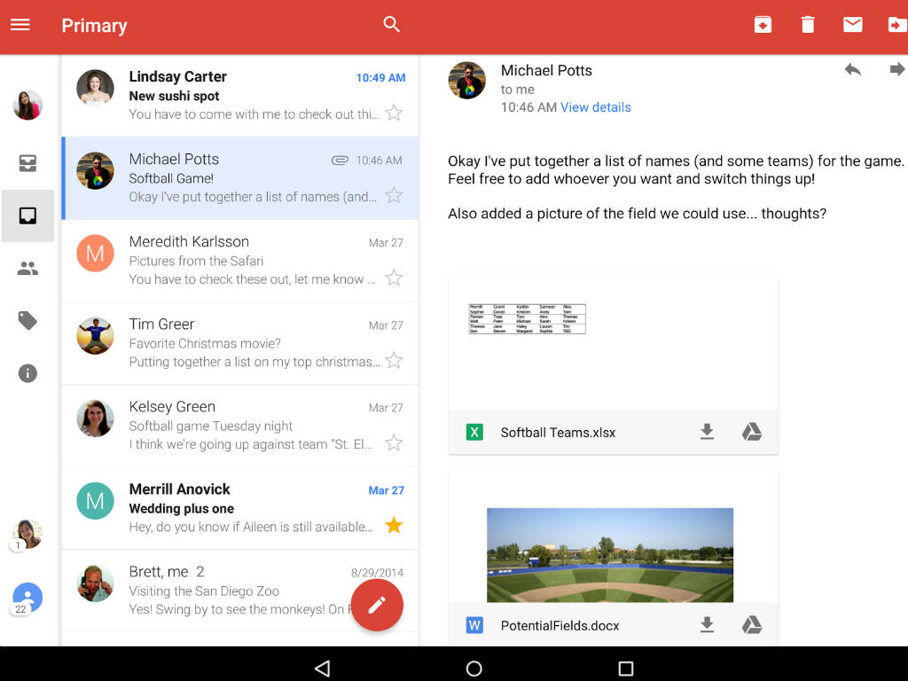 Según la publicación: “la actualización de hoy también incluye animaciones más sensibles (al abrir y cerrar una conversación), un ‘preview’ más amplio de archivos adjuntos para ayudarle a ver lo que hay dentro, y la capacidad de guardar en Drive con un solo tap”.