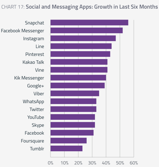 De todos modos, no todas son malas noticias para le red social de Zuckerberg y los planes por concentrarse en el universo móvil están dando poderosos frutos. Si bien Snapchat es la red social que creció con mayor rapidez, Facebook Messenger se encuentra en el segundo lugar, seguido de Instagram, la otra red social de Zuckerberg. Como vemos, las aplicaciones móviles siguen representando los motores de crecimiento de la compañía.