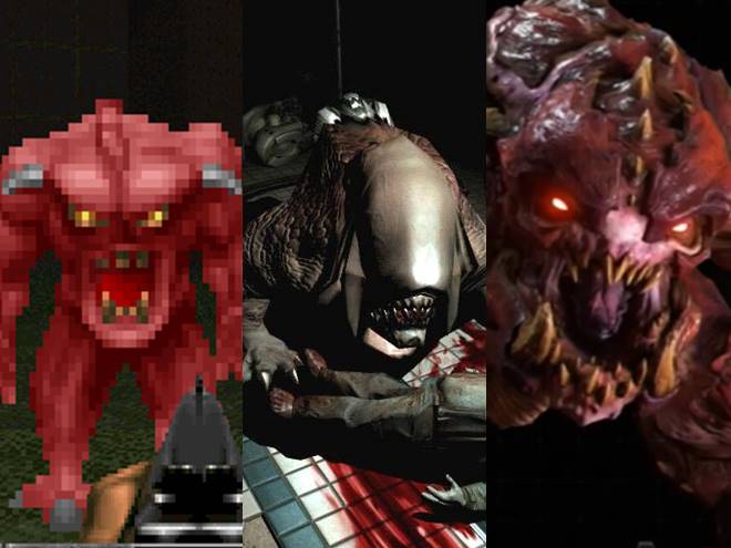 Si existe algo tan emblemático como la violencia y la acción rápida, claramente son los demonios de ‘Doom’, que hicieron tan atractivo el concepto del juego. Por ello hemos recopilado los enemigos más importantes y creamos una guía visual sobre su evolución. Cada imagen iniciará con el aspecto de ‘Doom’ y ‘Doom 2’, seguirá en la mitad con el aspecto de ‘Doom 3’ y terminará a la derecha con la última encarnación del demonio de turno en ‘Doom’ (2016).
