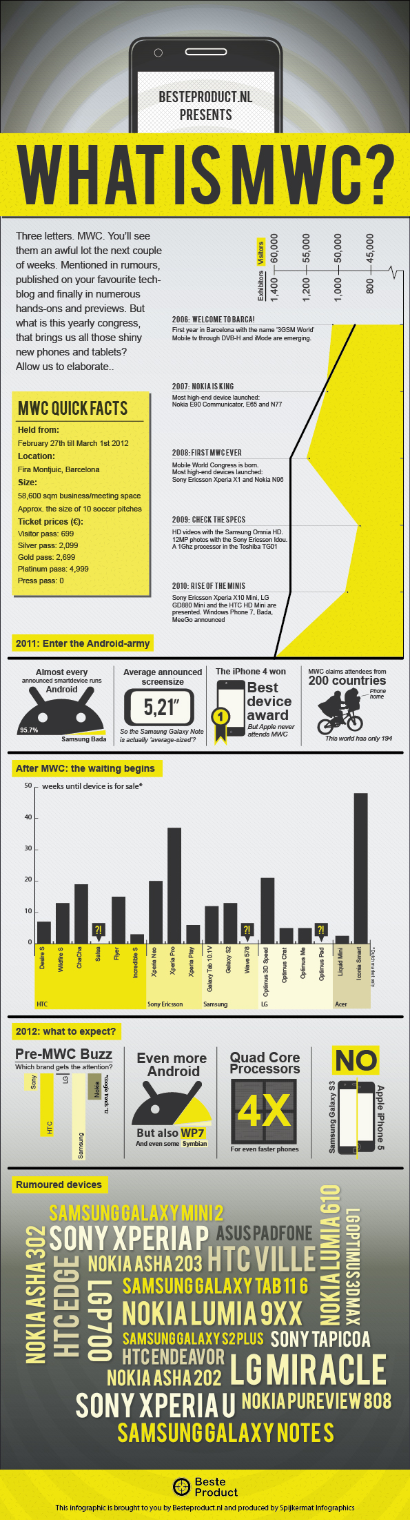 En la infografía que les compartimos a continuación, realizada por Beste Product, se explican los principales datos sobre el desarrollo que ha tenido el Congreso Mundial de Móviles desde 2006. Estos son algunos de los puntos principales que expone la infografía.