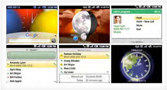 Esto no es todo. The Verge también reveló unas capturas de pantalla de lo que serían “elementos preliminares de interfaz de usuario de Android, fuertemente marcados como ‘sujetos a cambios’“. Entre otros, hay pantallazos de Google Talk, el navegador y la pantalla inicial.
