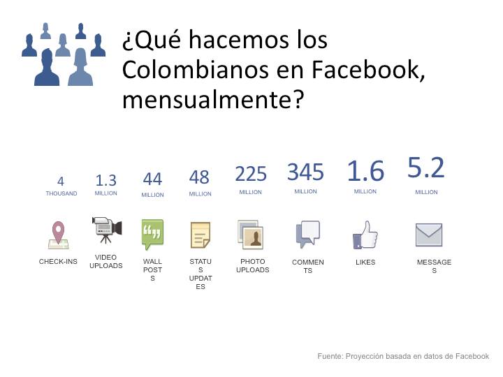 A pesar de desmentir el mito de que Colombia es el tercer país más popular de la red, sí nos dijeron que es una de las naciones que más tiempo pasa en Facebook y que en Latinoamérica es uno de los países con mayor número de usuarios. Más de 20 millones de colombianos tienen Facebook, o sea casi el 50% de la población.