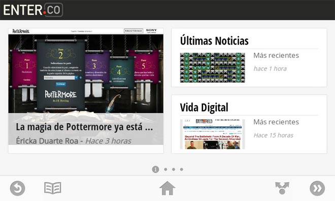Currents permite navegar por las secciones de nuestro sitio, o ver un ‘feed’ de últimas noticias que se actualiza automáticamente para que el usuario siempre tenga en sus manos lo más reciente que haya salido de nuestra redacción.
