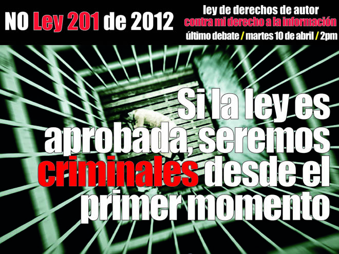 • Les entregamos muchas de nuestras libertades, ganan las grandes industrias, ganan los extranjeros, pero los 30 millones de usuarios de la red en Colombia perdemos bajo la legalidad de una ley que fué enmendada con babas de la primera ley lleras. Esta es Colombia, siempre arrodillados a los Estados Unidos.