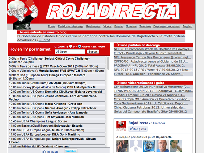 El sitio web de transmisiones deportivas en línea recuperó los dominios .com y .org, que habían sido embargados por el gobierno de Estados Unidos desde febrero de 2011 por una presunta violación de derechos de autor.