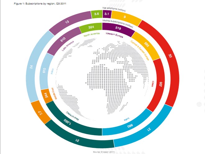 En este momento, la penetración de la telefonía móvil alcanza un 82% en todo el mundo –y en Latinoamérica ya alcanzó el 100%–, y se estima que hay más de 5.800 millones de suscripciones móviles. y el aumento de las conexiones de Internet móvil están creciendo un 60% cada año. China e India son los países donde más crece la penetración de la telefonía móvil y de Internet desde los celulares, con cifras que superan los 50 millones de suscripciones nuevas solo en el tercer trimestre del año.