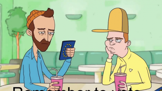 Tiene toda la diplomacia de un episodio de South Park. Es un fortachón de caricatura llamado Voteman.