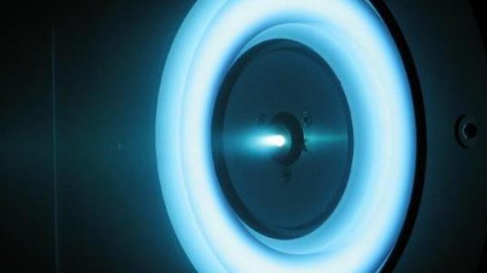Esta imagen presenta el nuevo motor de propulsión eléctrica y solar de la nasa.