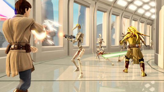 El juego permite controlar a un guerrero Jedi o manejar el clásico kart de Anakin Skywalker que salió en la primera (o cuarta) entrega de la saga, entre otras...