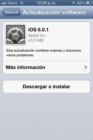 La compañía de la manzana lanzó iOS 6.0.1, la primera actualización de su más reciente versión de sistema operativo que soluciona algunos problemas del iPhone 5 relacionados con el teclado y la conexión Wi-Fi.