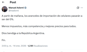 La eliminación de los aranceles a la importación de celulares empezó a regir este 15 de enero y ya reconfigura el escenario del mercado tecnológico en Argentina. A partir de ahora, los smartphones que ingresen al país dejan de pagar ese impuesto, una decisión con la que el Gobierno busca achicar la brecha de precios con el exterior, estimular la competencia entre marcas y modificar una estructura de costos que durante años encareció el acceso a estos dispositivos para los consumidores.
