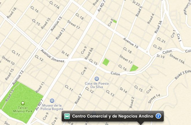 Google tenía pequeñas barbaridades, como el hecho de que la Boyacá terminaba hacia el norte de manera inesperada, pero en general partió bien. Uno como usuario puede ayudar a decir que una calle quedó en el sentido contrario o que hay un atajo no mapeado, pero los errores de Apple Maps son demasiados, y no hay muchos usuarios con tanta paciencia…