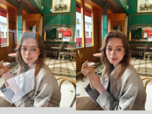 - Quitar destellos: elimina los reflejos en superficies de vidrio, permitiendo a los usuarios capturar paisajes a través de ventanas con mínima interferencia.